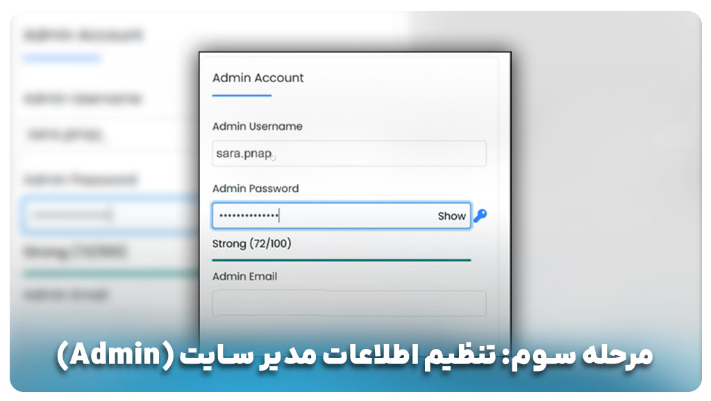 مرحله سوم: تنظیم اطلاعات مدیر سایت (Admin)