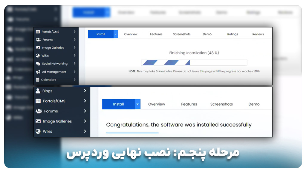 - چند دقیقه صبر کنید تا نصب کامل شود.