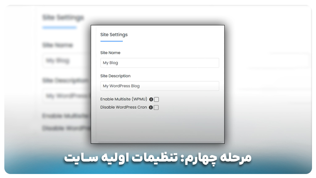 مرحله ۶: تنظیمات نهایی سایت و ورود به پیشخوان